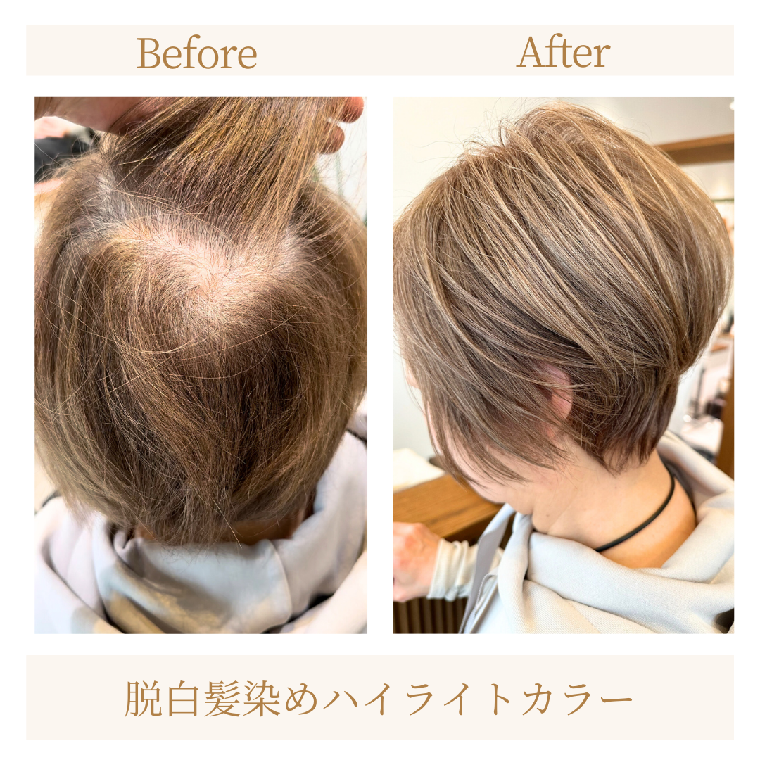 今まで、白髪を隠す様に暗めのカラーをずっとやってきました。髪がガシガシしてきた様に感じるのと、白髪が伸びてきた時に染めていた部分との差があって白髪が目立つのが悩みです