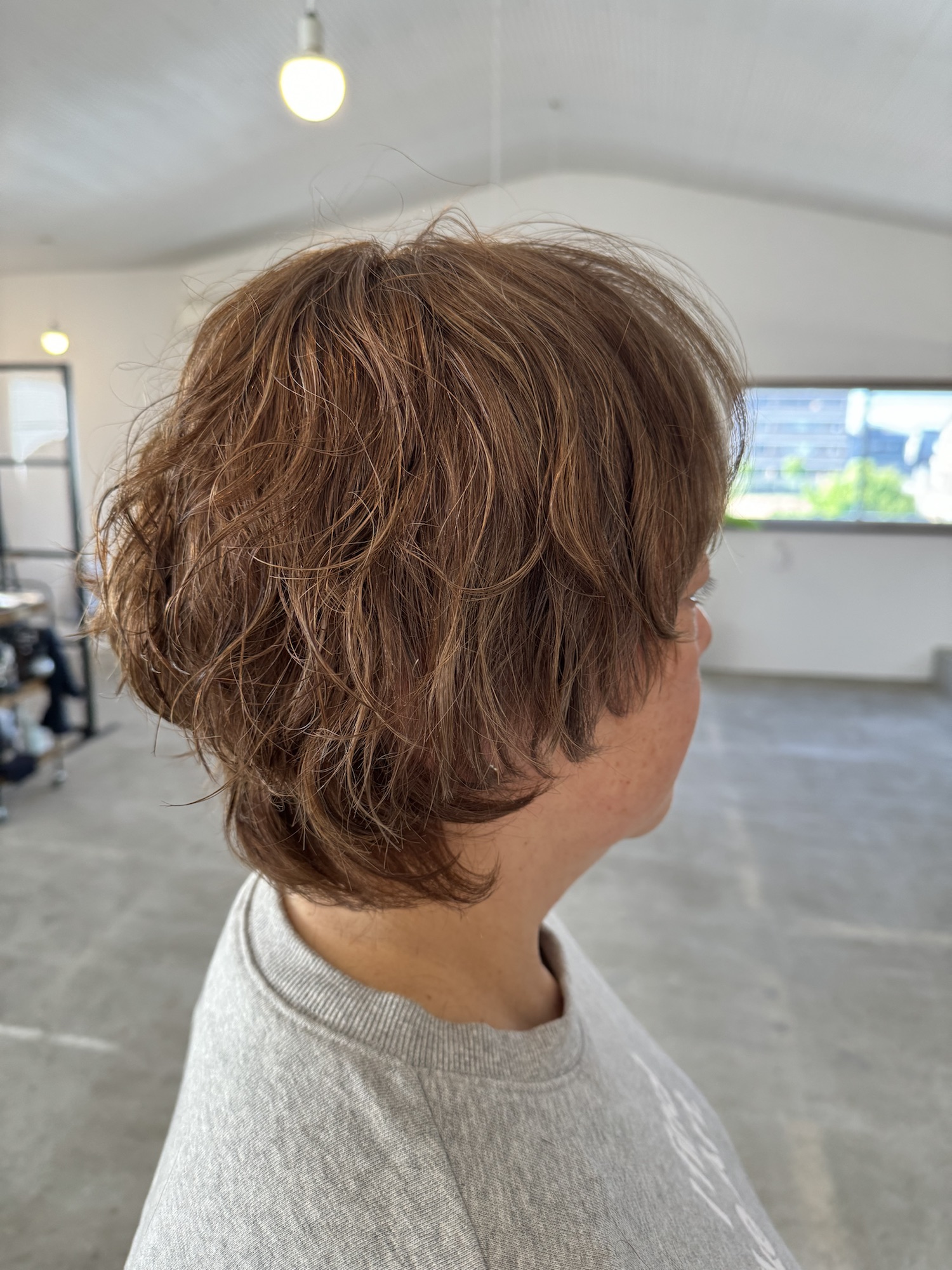 ・カラーはハイライトで明るさを出しつつ伸びて来た白髪とのなじみを良くして、全体も明るめにしました