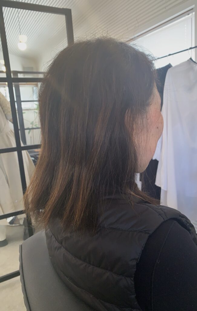 今日は、半年前にストレートをあてている所をカットしてなくしていきながら、少しずつくせ毛を育てていく施術させて頂いたお客様の施術事例をご紹介します。